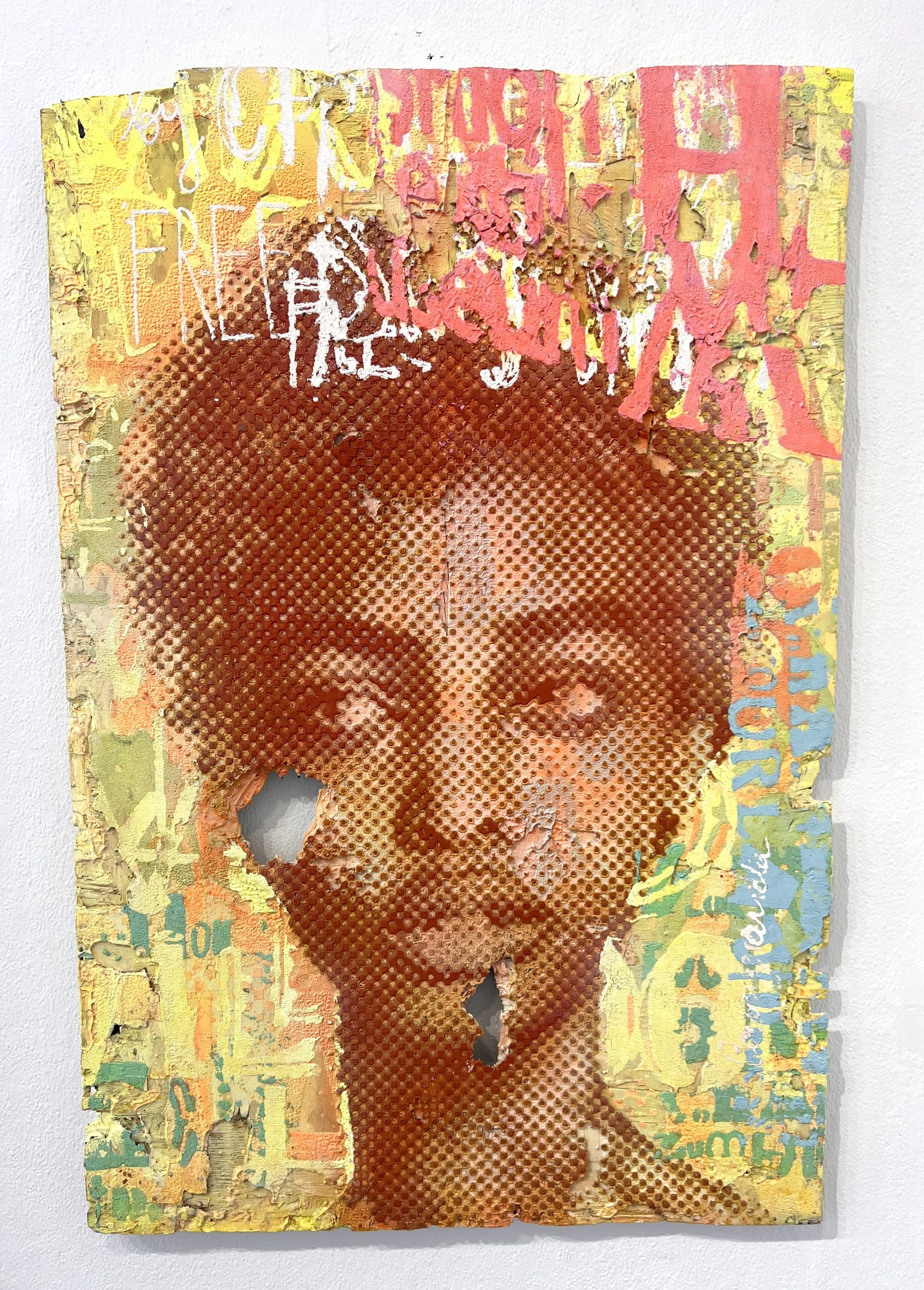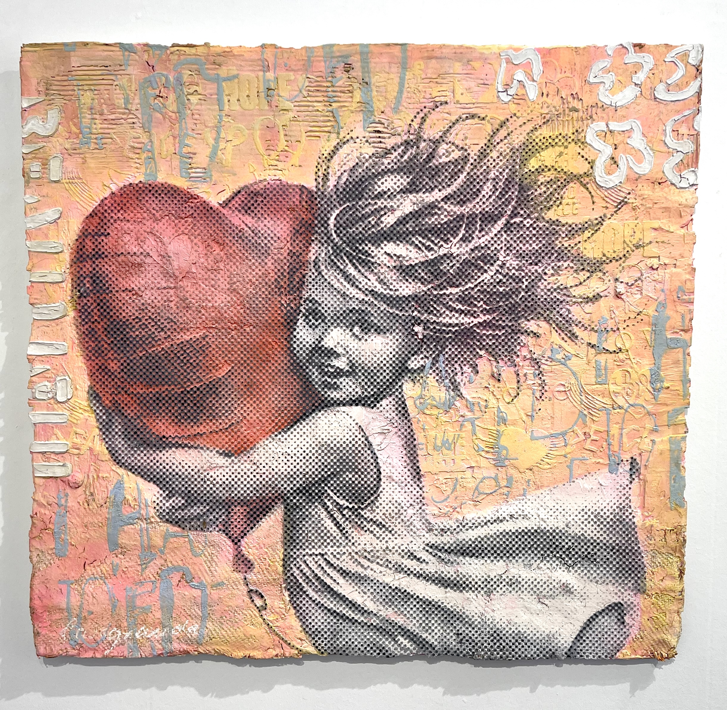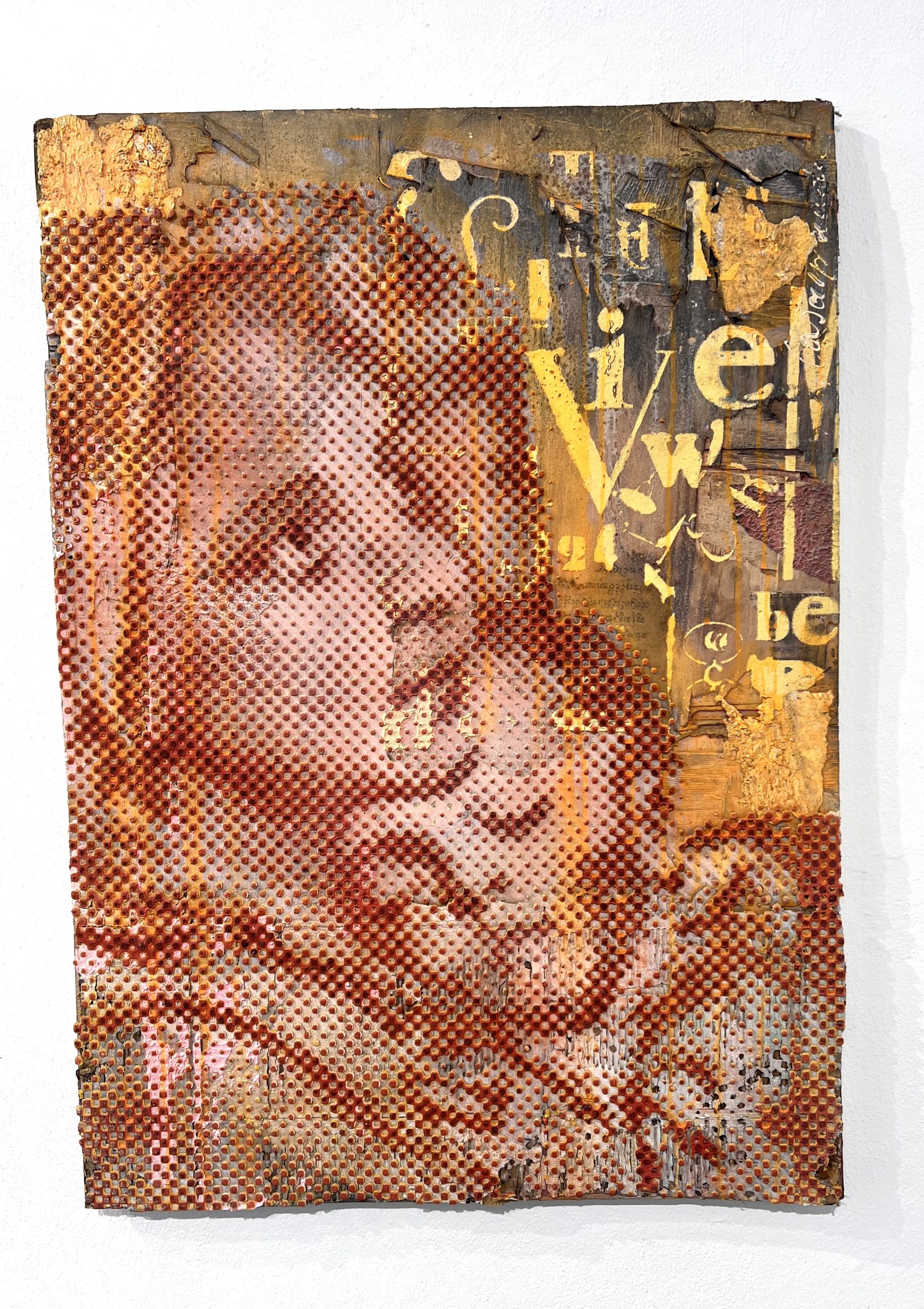 Es sind anmutige, ungewöhnliche Frauenportraits aus scheinbar vergangenen Zeiten oder anderen Welten, obwohl Gesichter moderner junger Frauen erkennbar sind. Die in Krefeld lebende Künstlerin Patrizia Casagranda schafft durch eine fast greifbare Materialität ausdrucksstarke Gemälde. Durch die Verbindung von Collage, Malerei, Graffiti, Schablonentechnik und Typografie wirken sie markant, reliefartig, rätselhaft, vertraut und doch fremd. Einen Teil des Jahres verbringt Patrizia Casagranda in Nordindien und verarbeitet ihre Erlebnisse eindrucksvoll in ihren Gemälden.