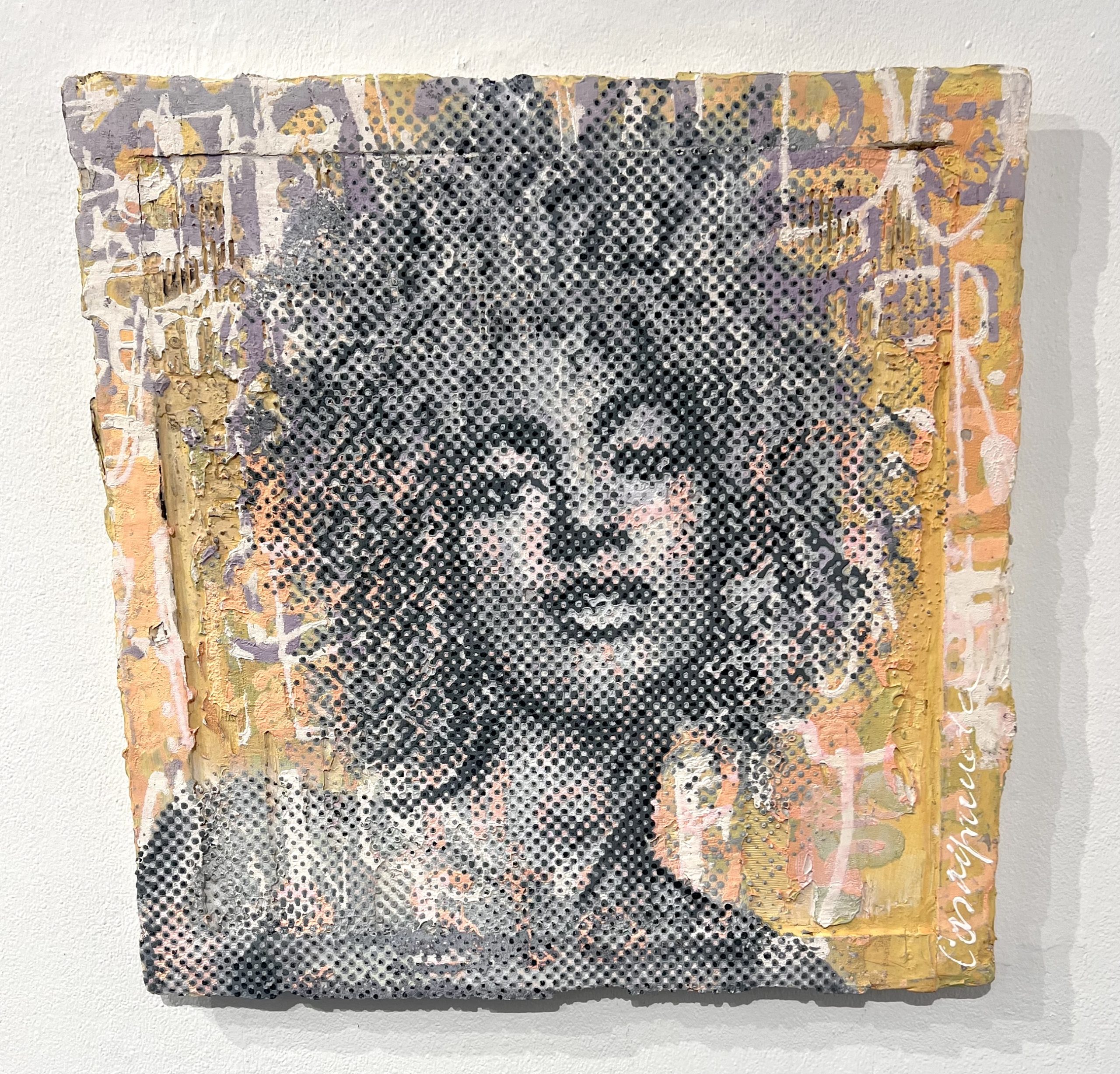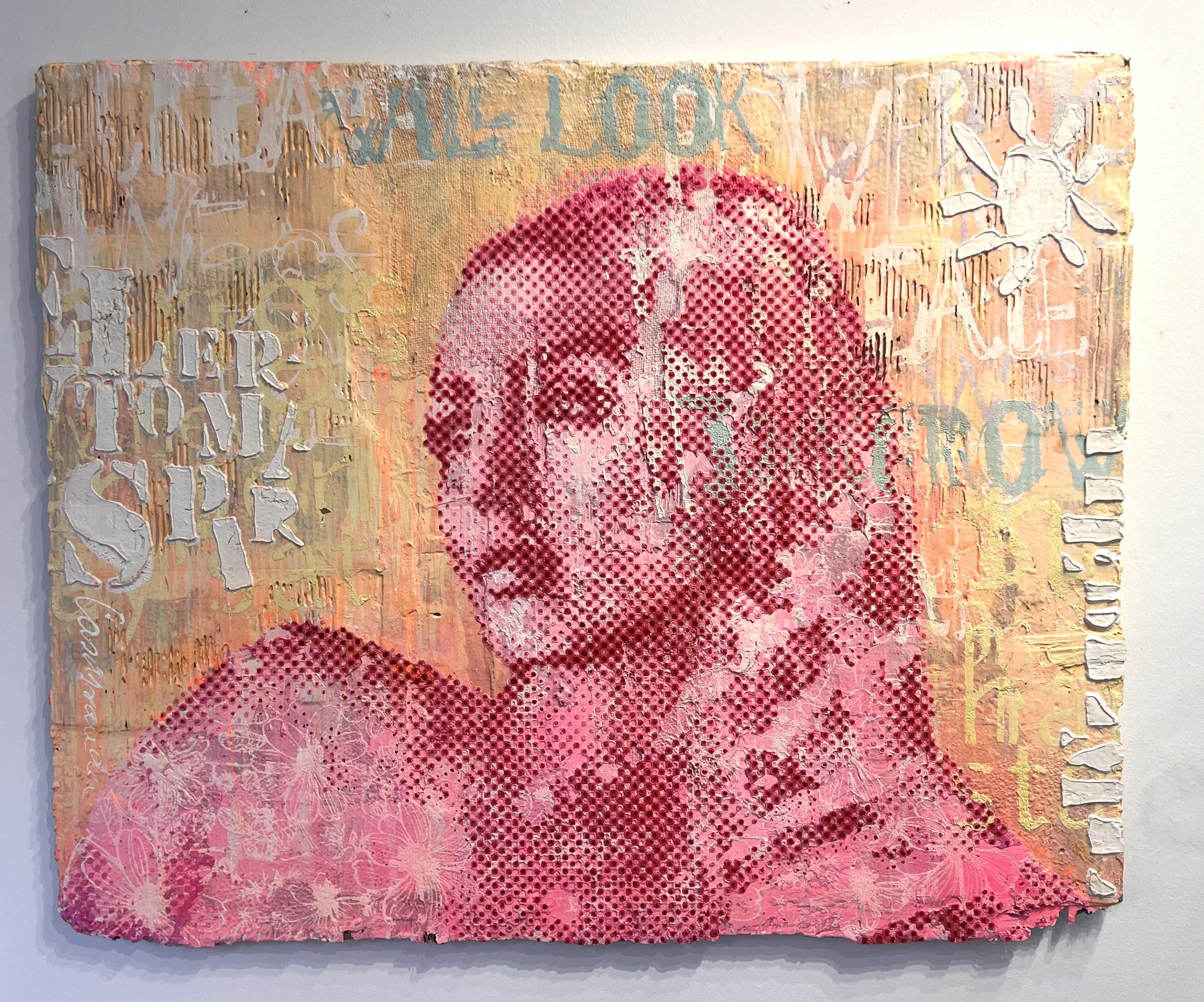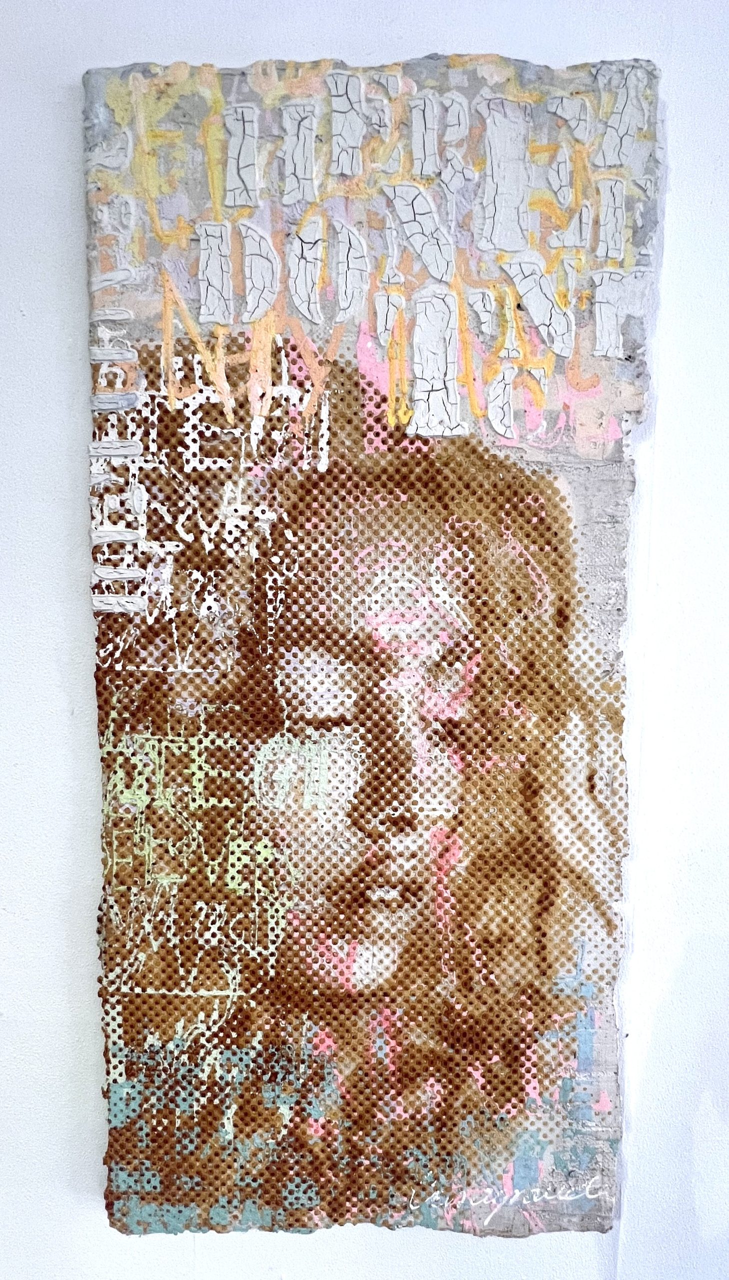 Es sind anmutige, ungewöhnliche Frauenportraits aus scheinbar vergangenen Zeiten oder anderen Welten, obwohl Gesichter moderner junger Frauen erkennbar sind. Die in Krefeld lebende Künstlerin Patrizia Casagranda schafft durch eine fast greifbare Materialität ausdrucksstarke Gemälde. Durch die Verbindung von Collage, Malerei, Graffiti, Schablonentechnik und Typografie wirken sie markant, reliefartig, rätselhaft, vertraut und doch fremd. Einen Teil des Jahres verbringt Patrizia Casagranda in Nordindien und verarbeitet ihre Erlebnisse eindrucksvoll in ihren Gemälden.